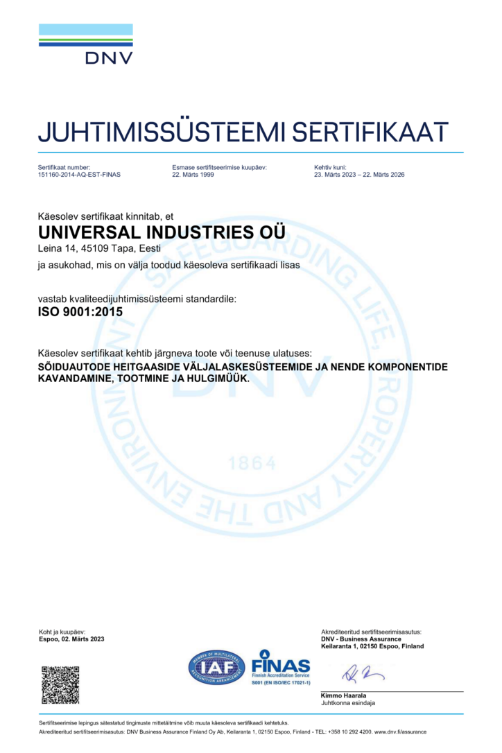 1993 aastal alustas Eestis asutatud ettevõte Universal Industries väikeettevõttena töökojas ning leidis peagi tee autotööstusesse, hakates juba 1993. aastal tootma summutitorusid ja -osasid tööstuslikus mahus.